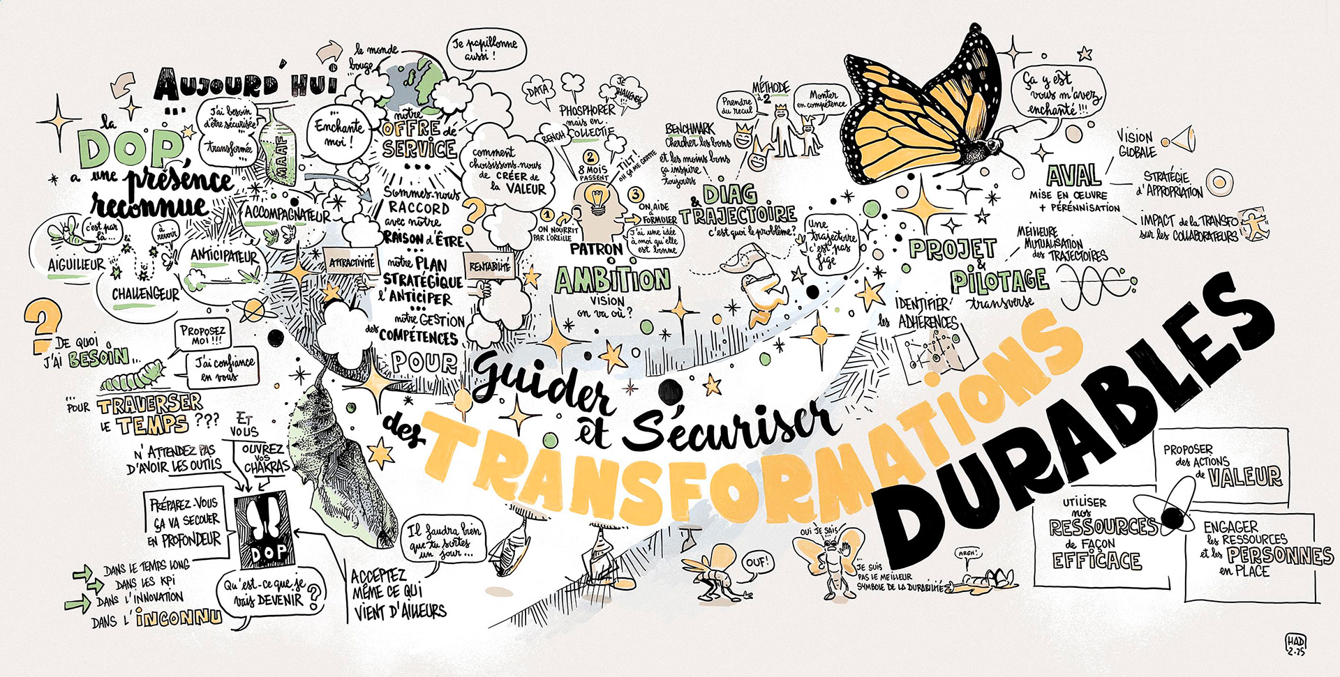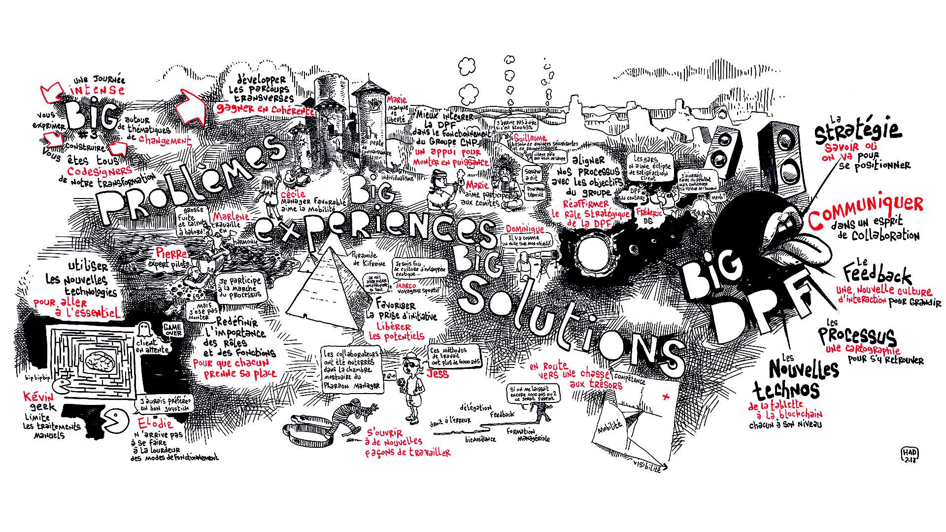 La facilitation graphique est une technique d’accompagnement du travail collaboratif. Le facilitateur graphique écoute le groupe de travail, et dynamise les échanges avec des visuels créés en direct. On peut en attendre trois apports bénéfiques :